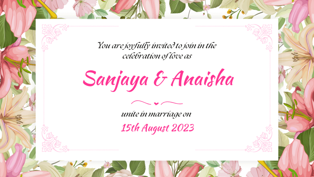 Digital invitations are a beautiful, eco-friendly, and convenient way to invite your loved ones to celebrate life’s special moments. At Blissful Invites, we design elegant and fully customized digital invitations that perfectly match your event and personality.